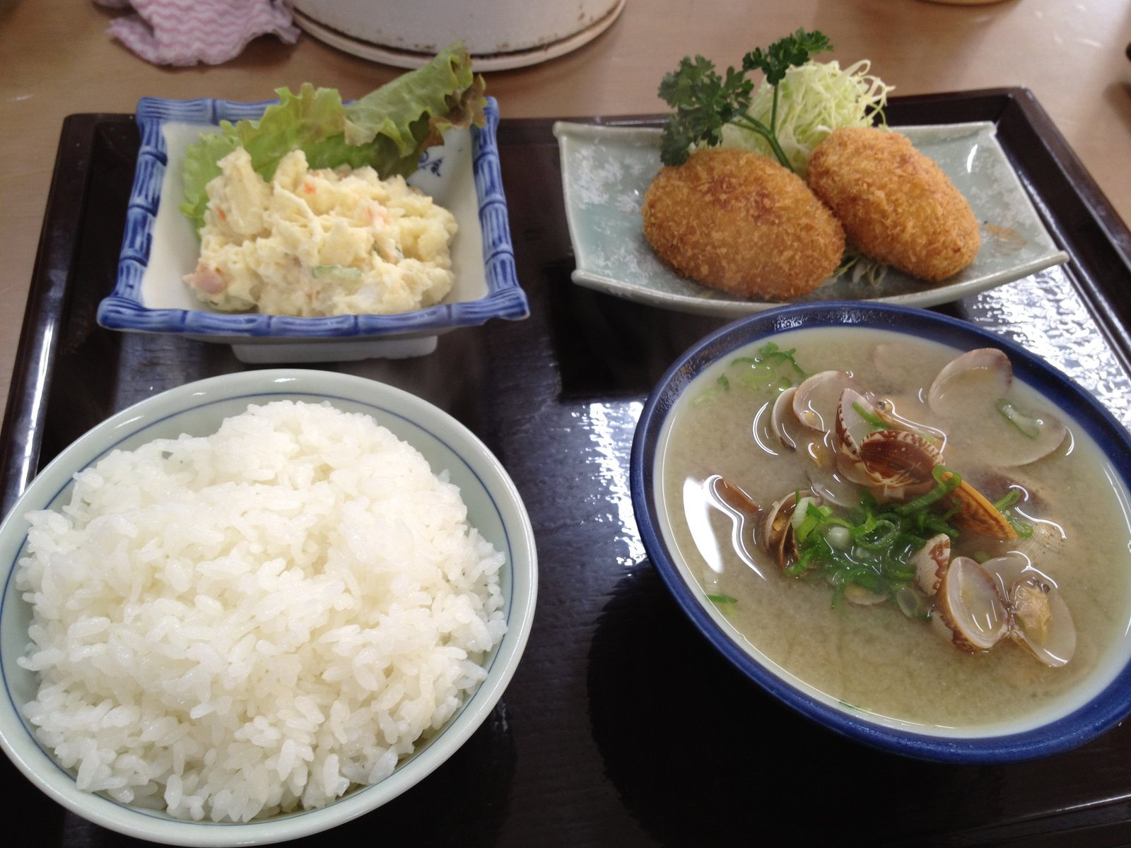 ごはん中150円、コロッケ150円、ポテトサラダ150円、貝汁150円にしちゃったんです…