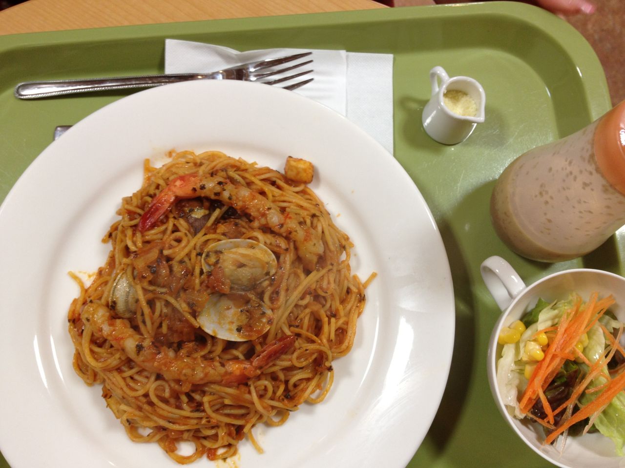 連れが注文した、シーフードパスタ680円も、バジルの風味が効いていて美味しかったです~