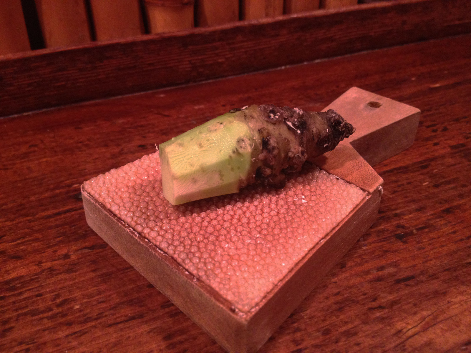 お料理の説明の前にまずびっくりしたのが、おそばの提供を待つ間にわさびを自分でするということ
