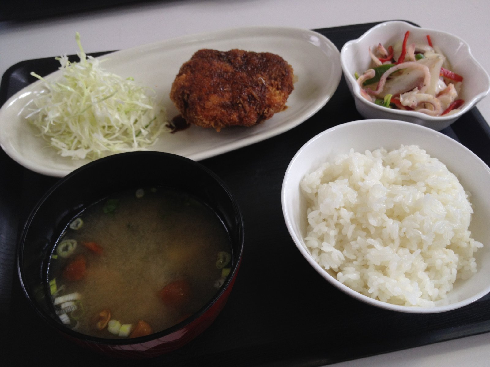 メンチカツはしっかりとした肉質で食べごたえありっ(^^♪