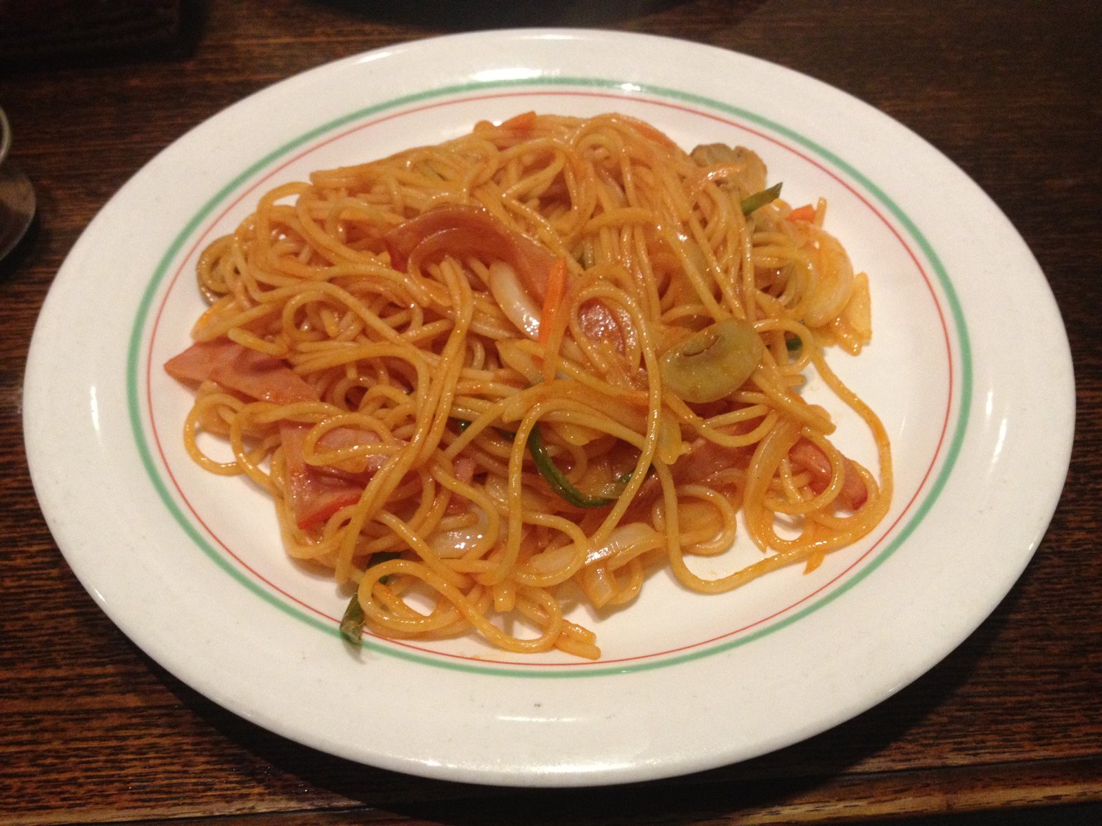 見た目シンプルなナポリタンは、マッシュルーム、ハム、タマネギ、ピーマン、ニンジンといった具が入っておりました