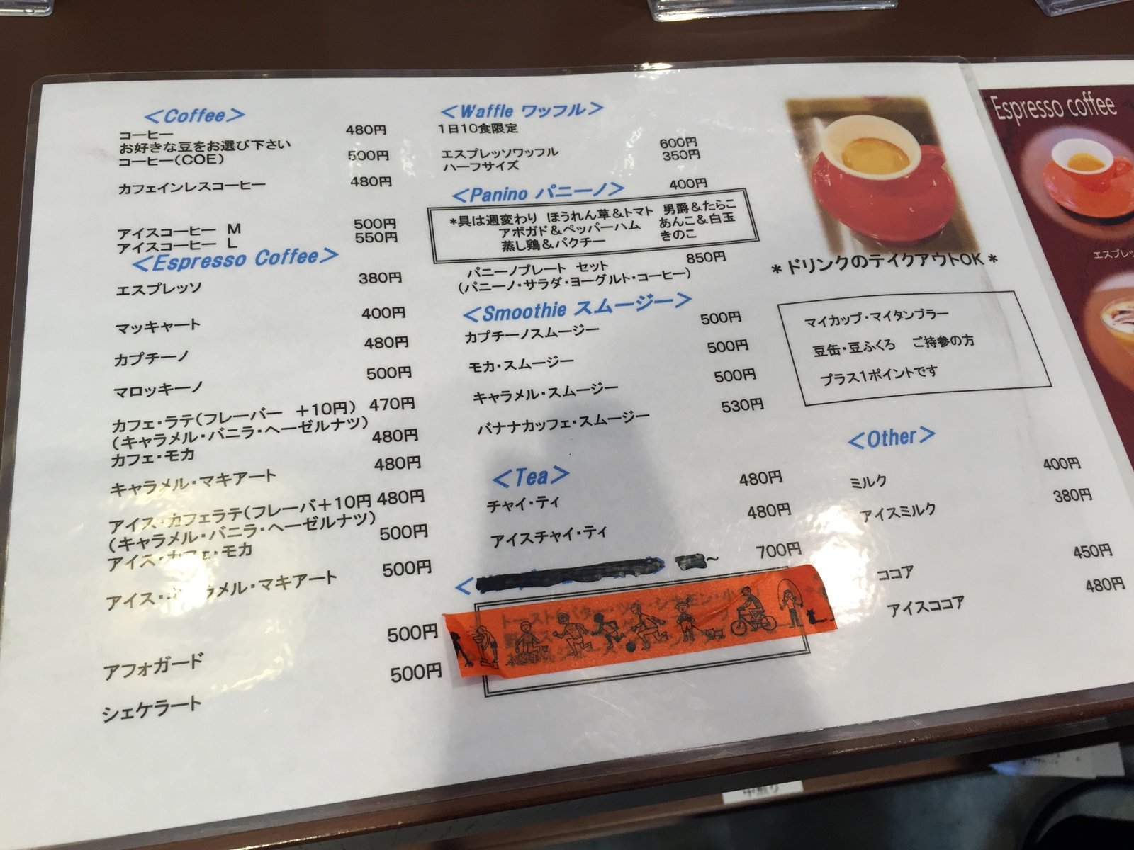 カフェインレスコーヒー、エスプレッソ、スムージーなど幅広く揃っているけど、むむ?