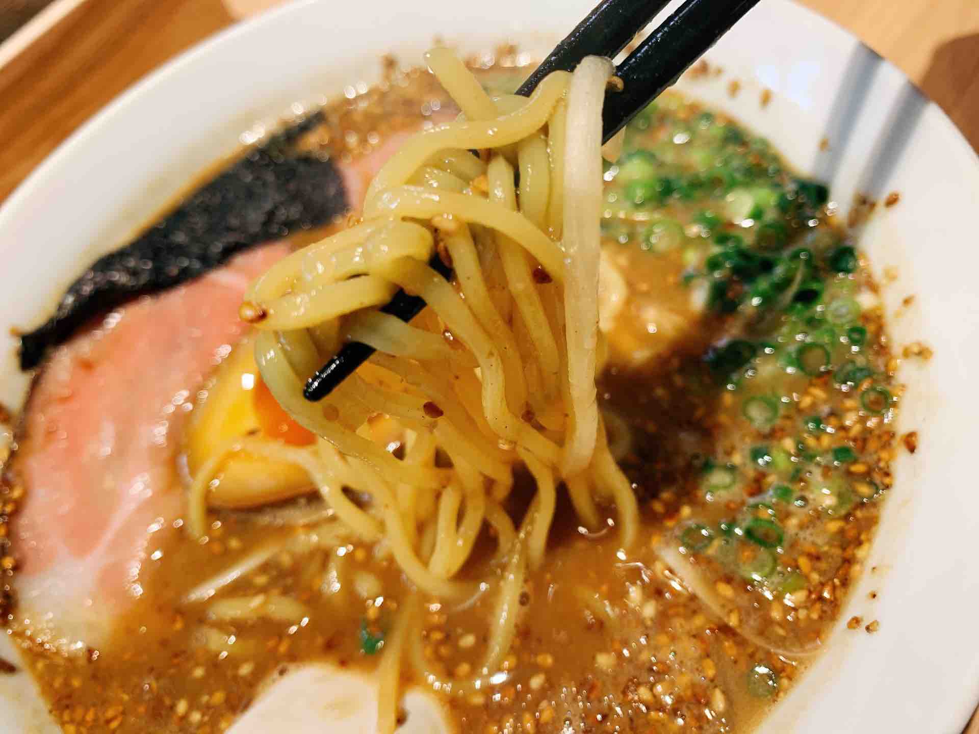 麺は、醤油のものとも豚骨のものとも違う、プリプリとした中太のものっ