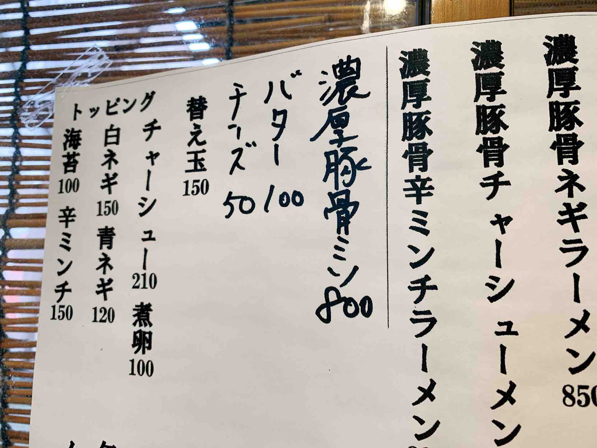 濃厚豚骨ミソラーメン 800円