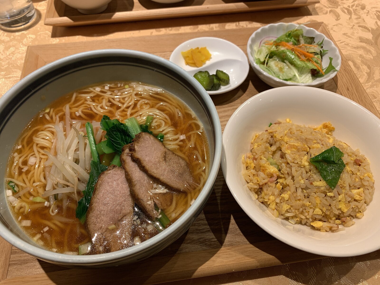 レタスチャーハン、日替わりサラダ、漬物が付きます