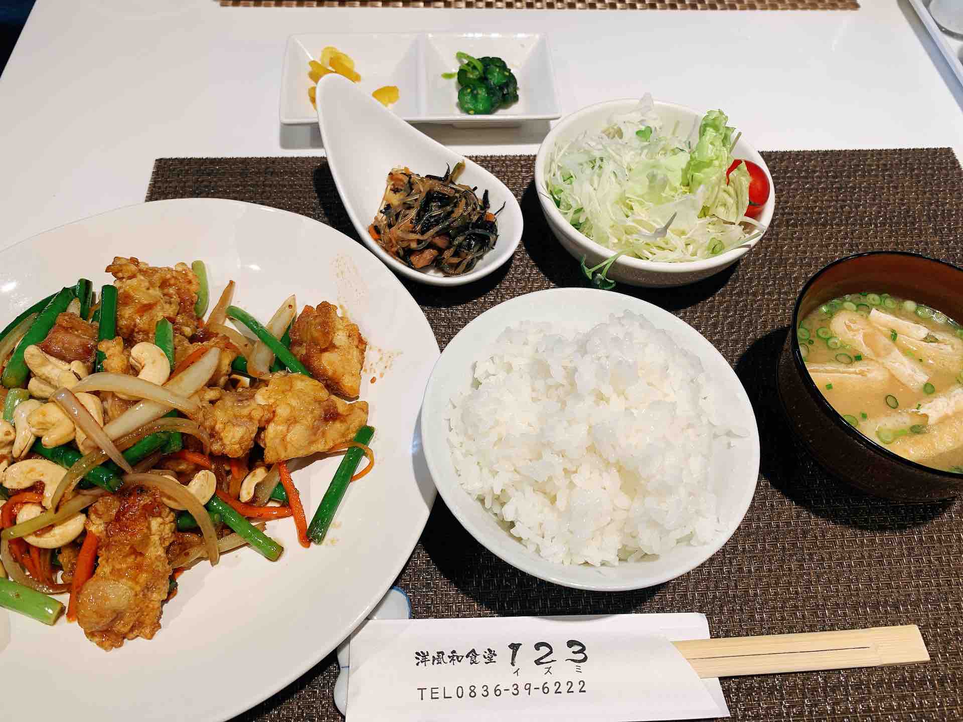 ・洋風和食堂 1Z3、第一回紹介「鶏とカシューナッツ炒め定食 750円」