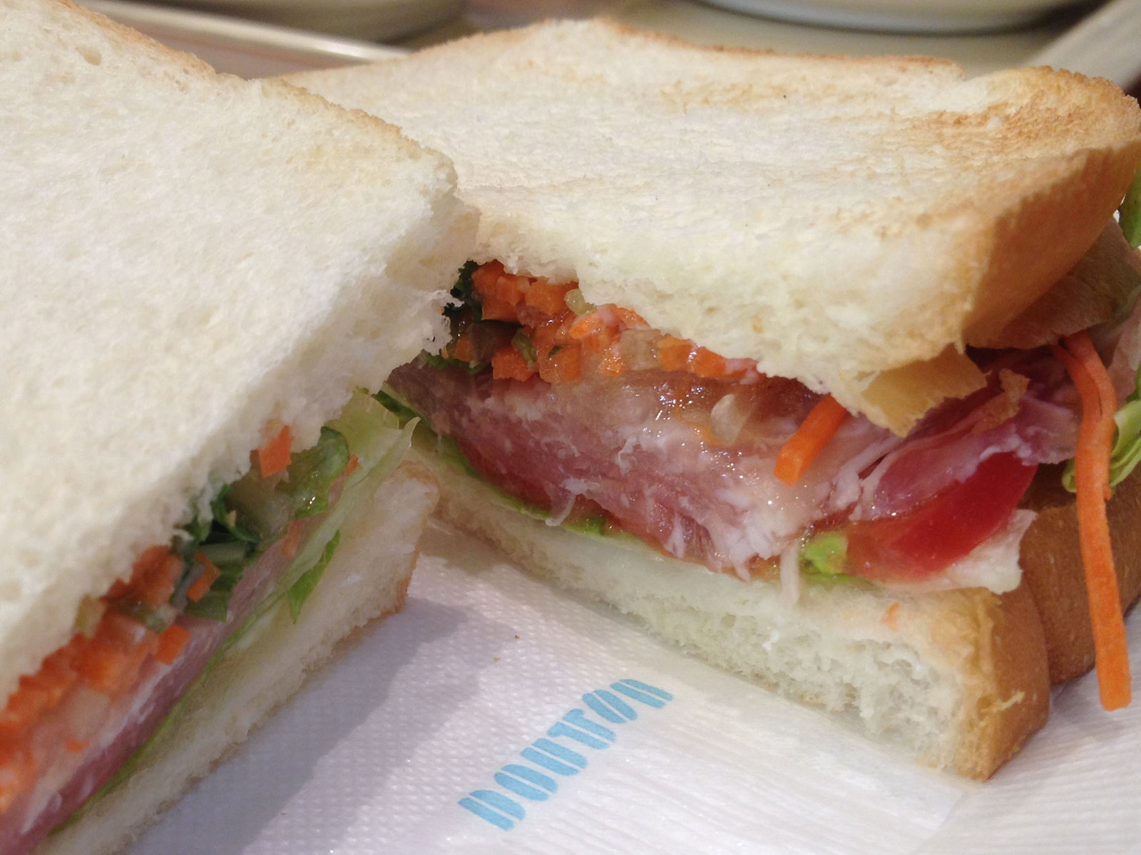 今回は、クリームパンにサンドイッチを食べてみました~