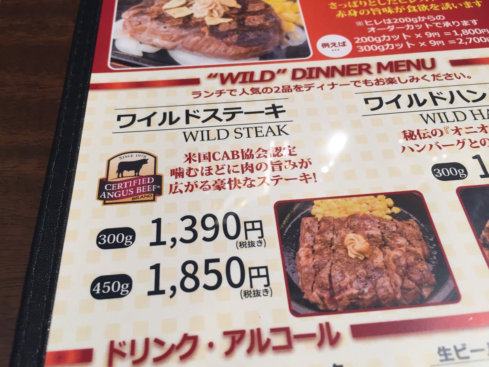 周りのお客さんは、1g9円のヒレステーキや、1g6.9円のリブロースステーキなどを豪快に300gや400gで注文しておりましたが、私は謙虚にいつも通りのワイルドステーキ300gを注文っ