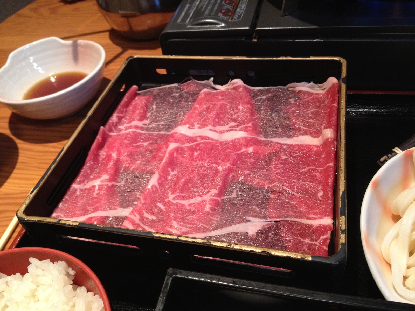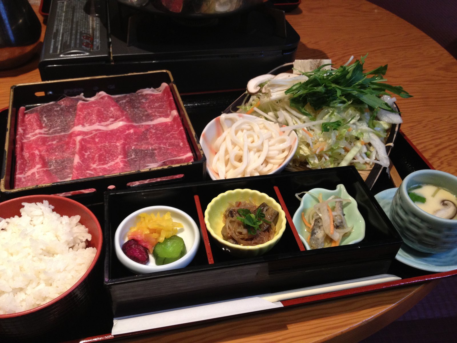 お肉が2種類もあって、細切りのお野菜がたっぷり盛られているし、しゃぶしゃぶとすき焼きの2種類を楽しめるとあって、すごく満足感がありますよっ